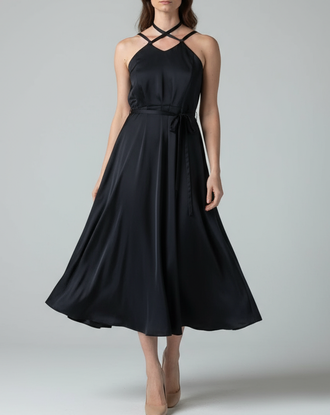 DAPHNE DRESS BLACK SATIN/MORE COLOURS