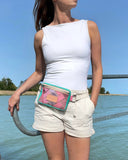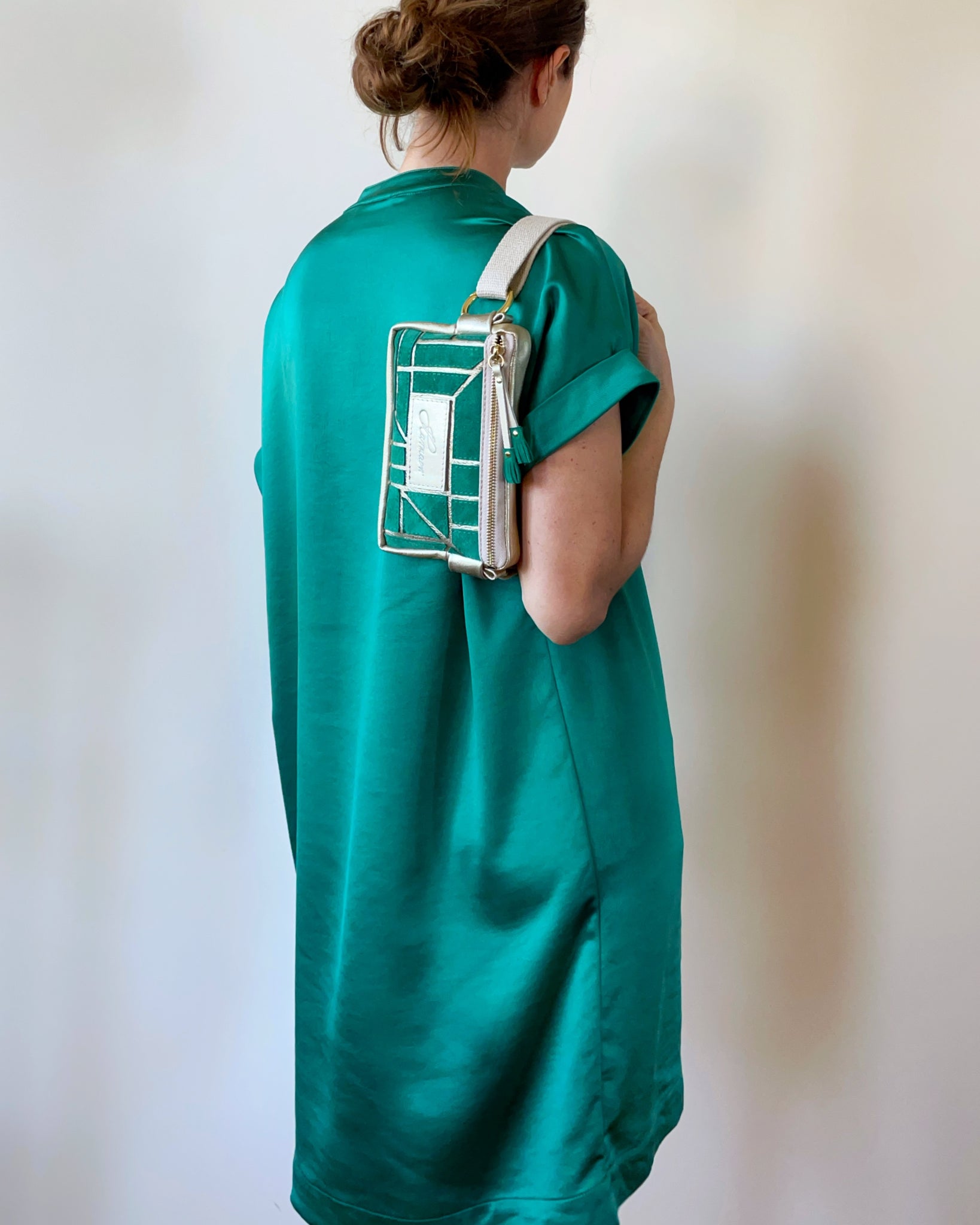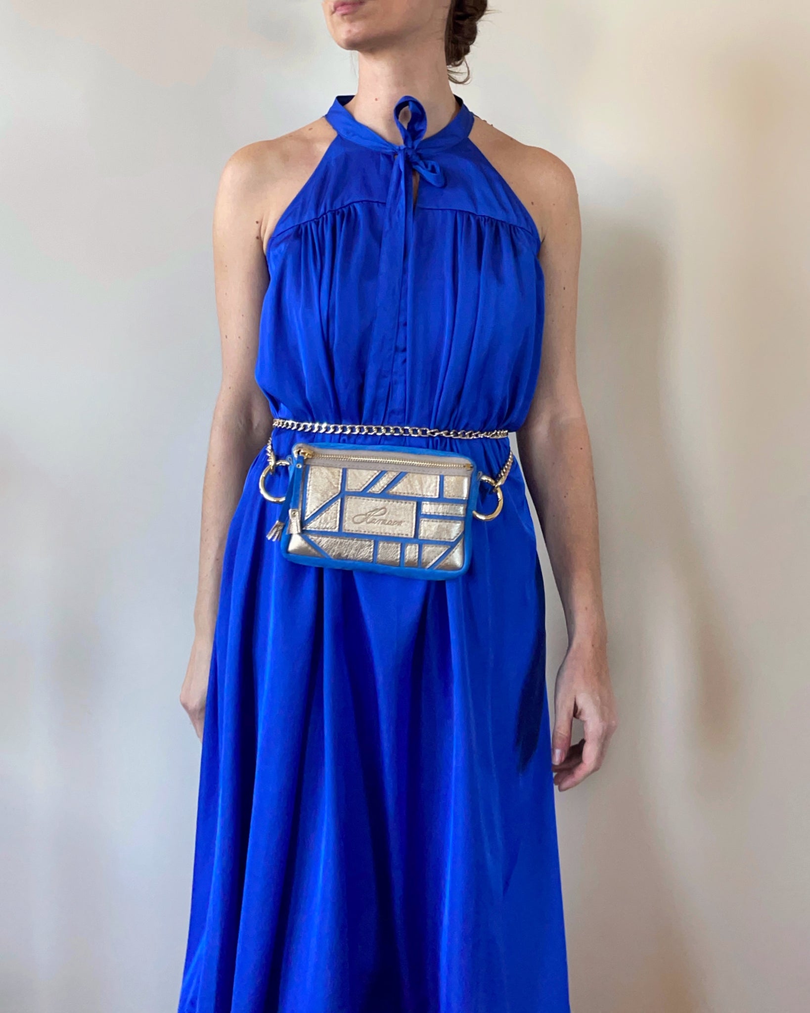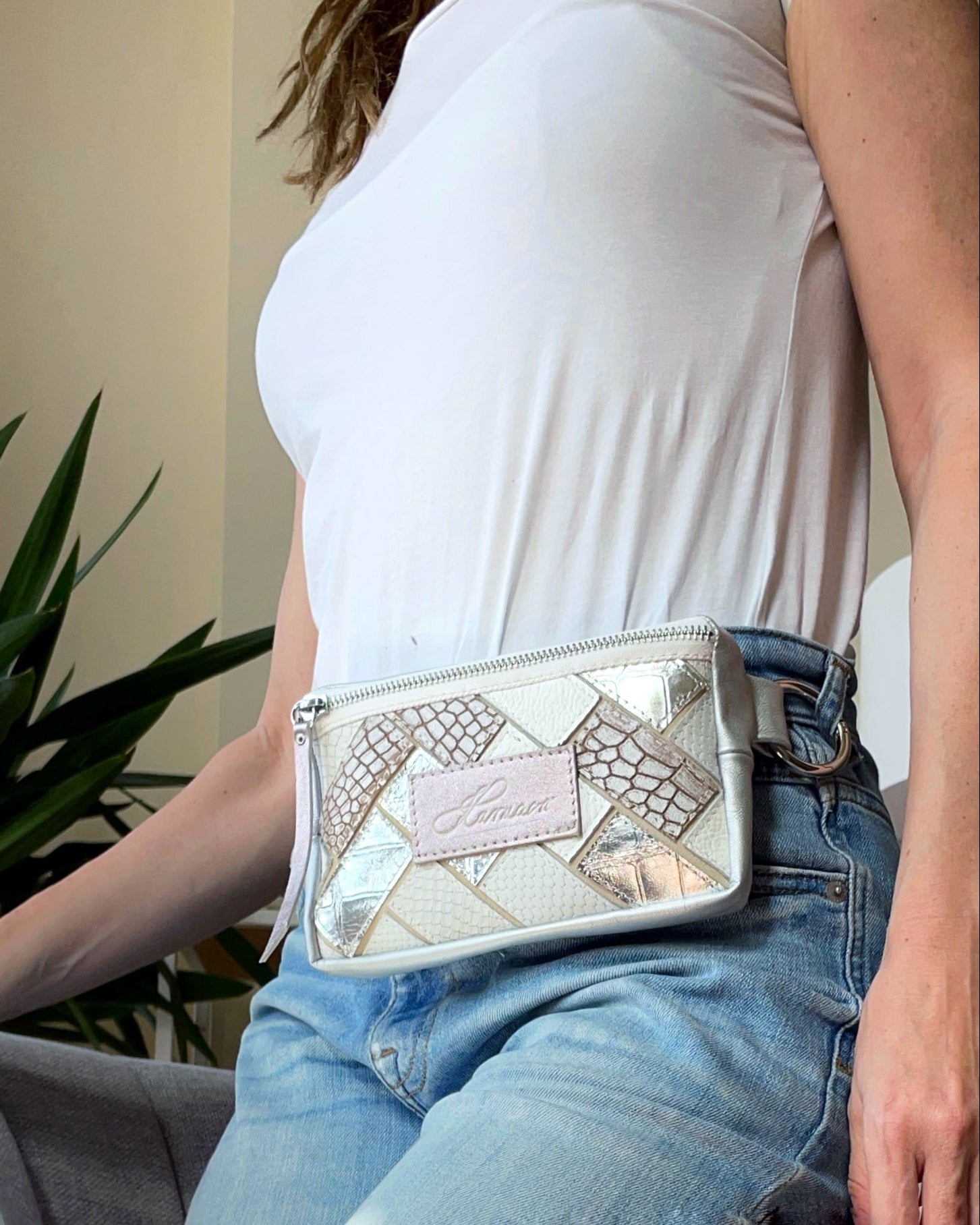 Ezen a kis létszámú 3óra időtartamú workshopon megismerkedhetsz közelebbről a bőrrel, eljátszhatsz a színekkel, a textúrákkal és a végére összeállíthatod a saját egyedi színkombinációs mozaik kistáskád alapját. 17*12*2cm.  A Fannypack fazon heveder és lánc pánttal övtáskaként és a lánc pánttal válltáskaként is hordható. A heveder pántot a nyitható karikák összekapcsolásával övként is lehet használni