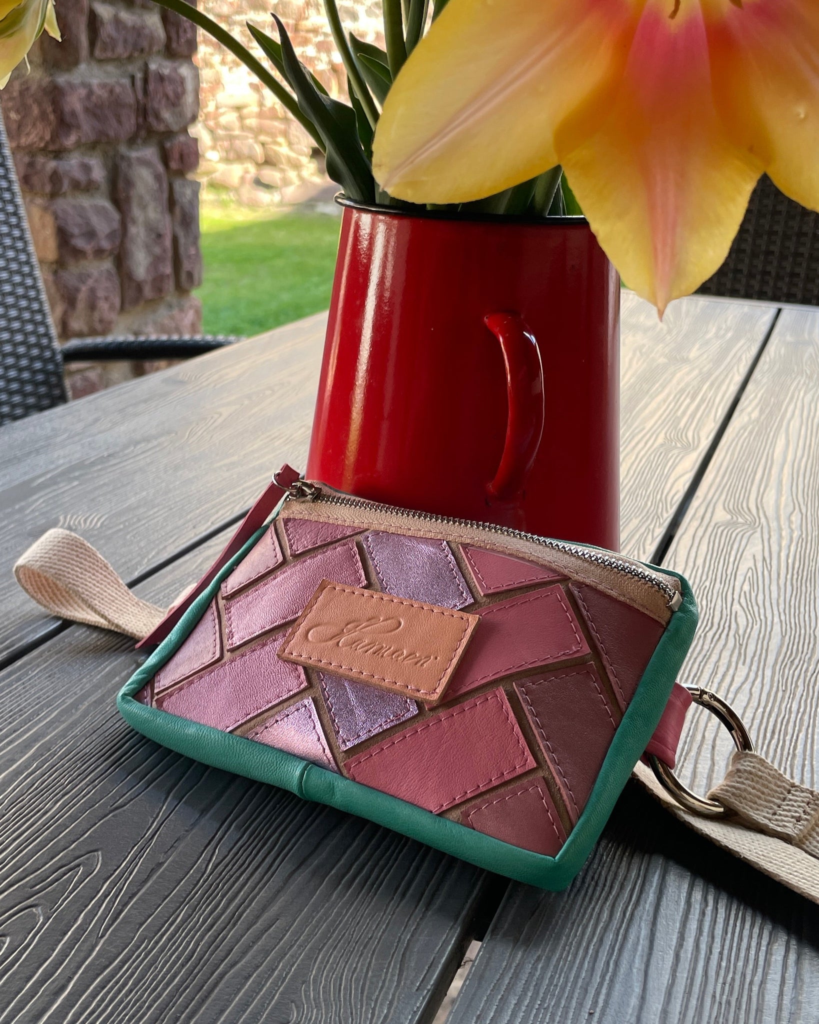 A workshopon a mozaik részhez a fenntarthatóság jegyében rengeteg, szabásból megmaradt apróbb (szépséges és sok-sok színű) bőrdarabot használhatsz fel!  Ezeket felszabjuk illetve már előre leszabott darabokból is válogatunk, majd kiválaszthatod az alapszínt és jöhet a mozaikolós színjáték. :) Összeállíthatod a kedvenc színeidet, vagy kedvenc ruhádhoz-cipődhöz passzoló kombinációt, vagy akár a színtípusodnak megfelelő színpalettát is összeválogathatsz. Így egy igazán egyedi táskát állíthatsz össze, a mozaik mellett minden más táskaelem (oldal elemek, zipzár, húzóka) színét is megválasztva. Az összevarrásra nem lesz gondod, azt már mi fogjuk megcsinálni! :)