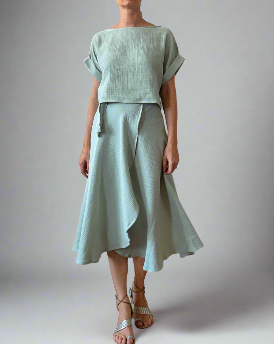 WRAPSKIRT DOUBLE GAUZE/SAGE/MORE COLOURS