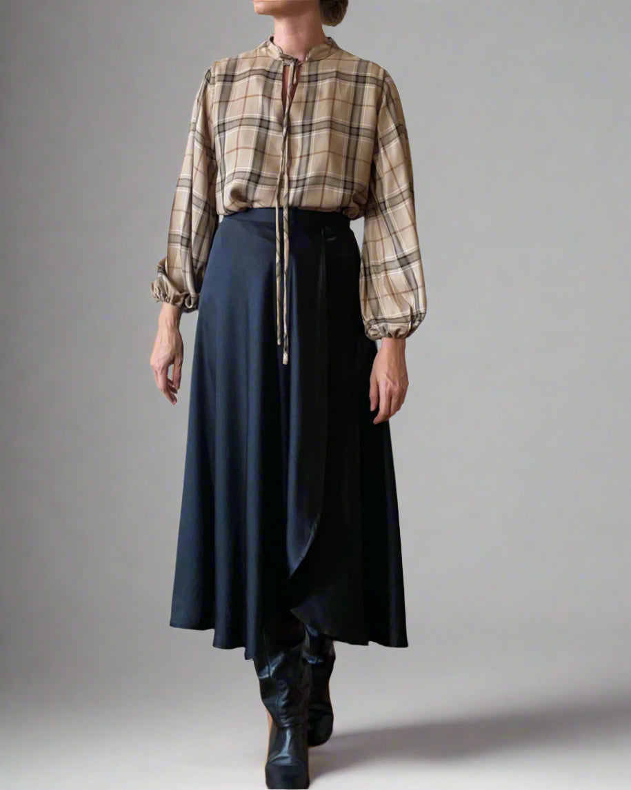 Tami mellénnyel, nadrággal, Sera vagy wrap szoknyával betűrve, vagy lazán kint hagyva is viselhetjuk. Gumis hosszú húzott ujjait háromnegyedesre is felhúzhatjuk.