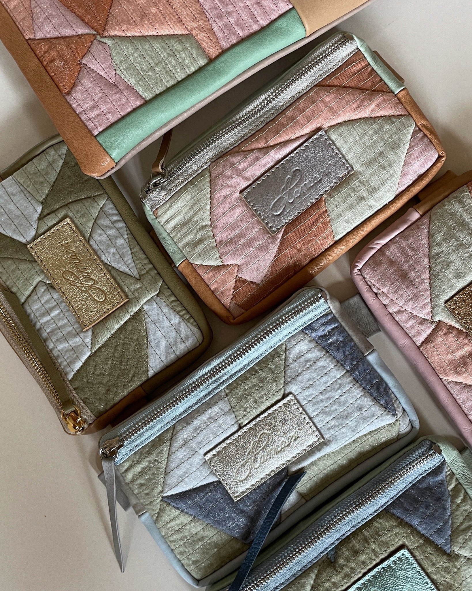 A QUILT MOSAIC fazonok alapgondolata- a fenntarthatóság jegyében-hogy a szabásból visszamaradt és kisebb textildarabokat izgalmas és szép módon felhasználjam. Ezzel a steppelt módszerrel változatos mintázatokat lehet alkotni és a szabászati maradékokat esztétikus módon felhasználni. Minden darab mintázata az egyedi készítés és a random formájú textilmaradékok miatt kicsit más lesz, de az alapszínei ugyanazok.