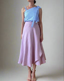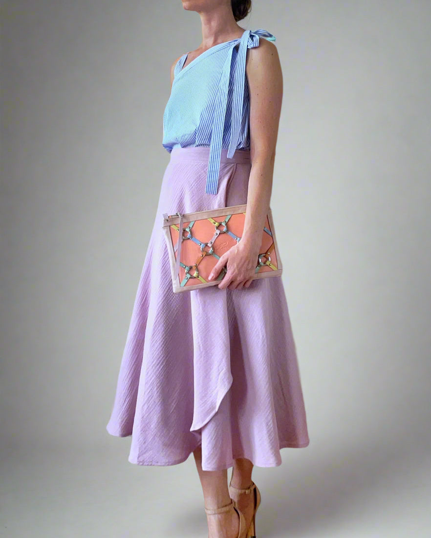 Àtlapolós fazonú körszoknya, elől íves szabással. Párosítsd hozzá színben passzló cropped Aya top fazonunkat.
