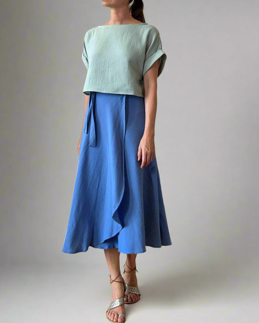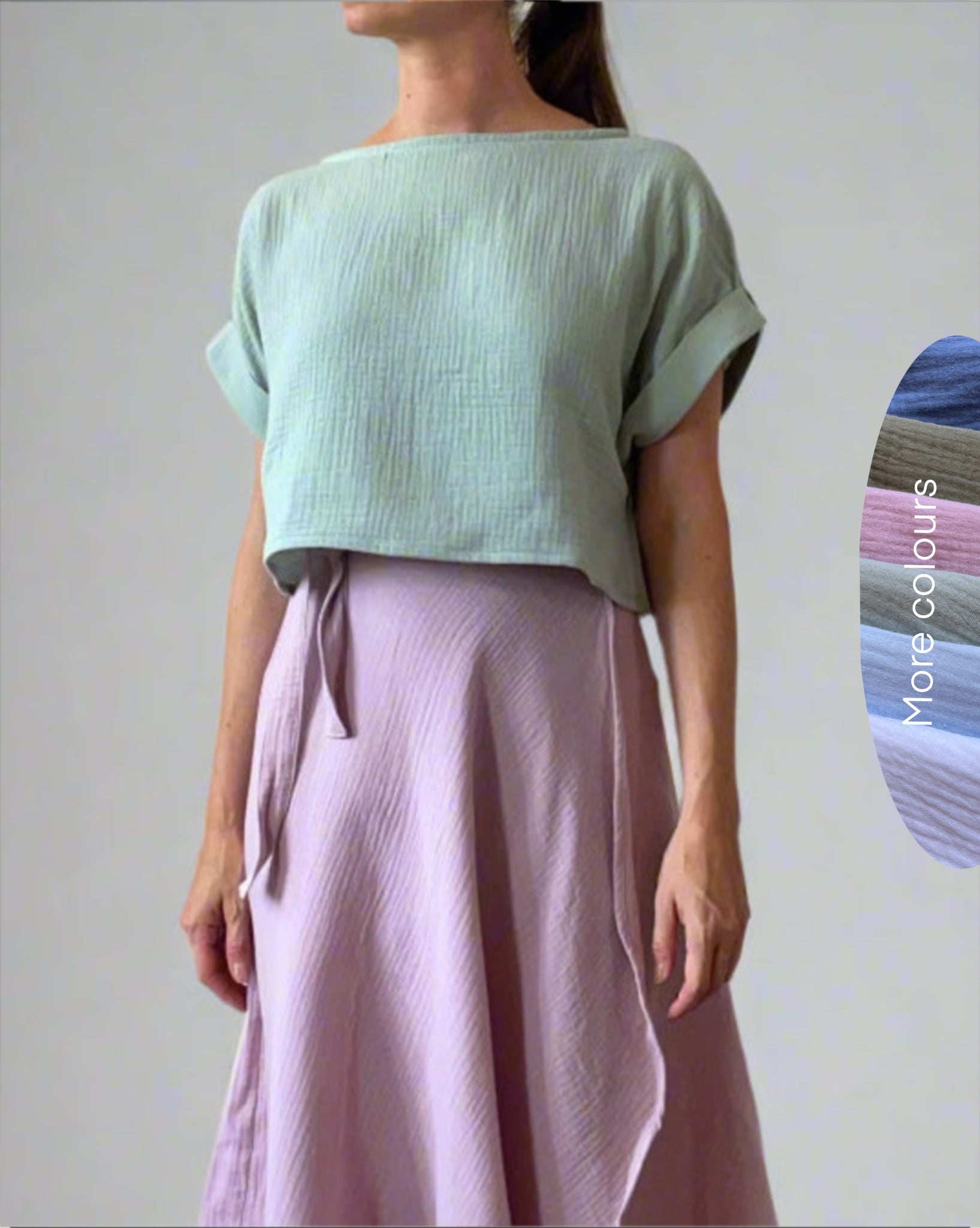 CROPPED AYA TOP DOUBLE GAUZE/SAGE/MORE COLOURS