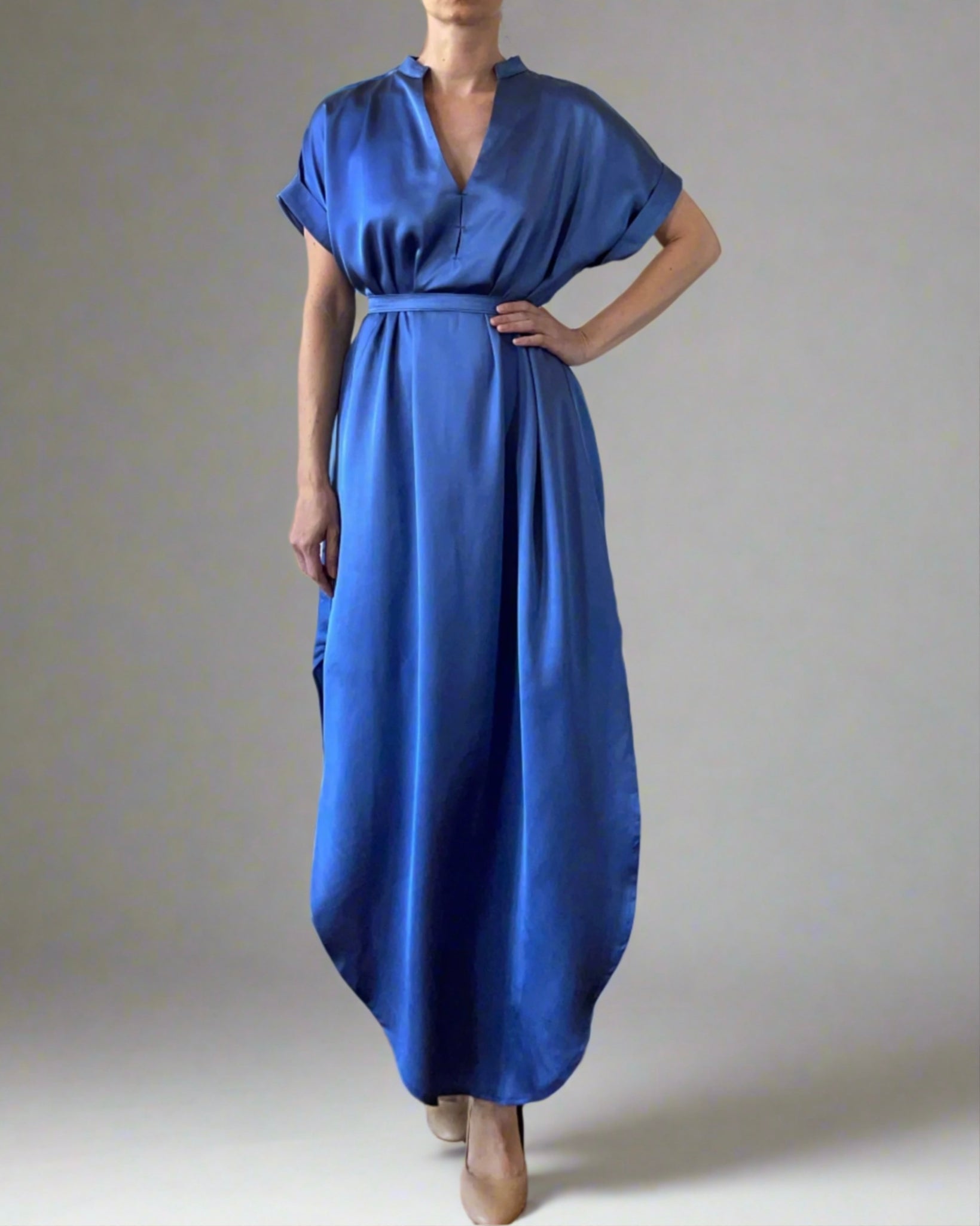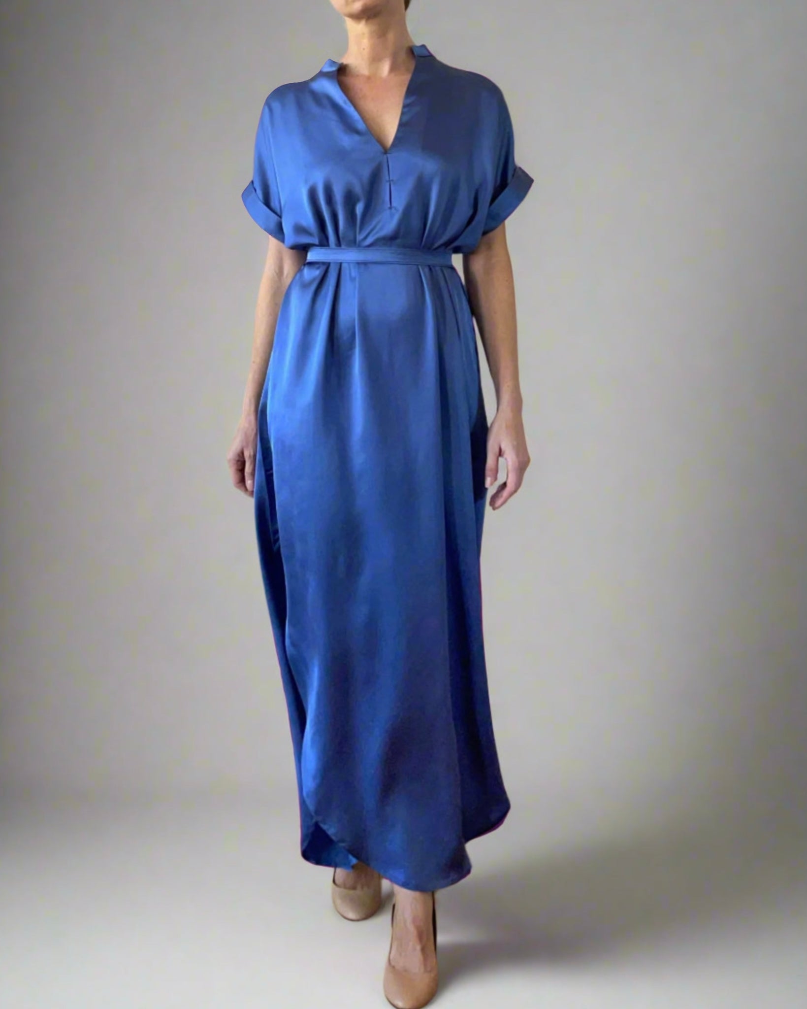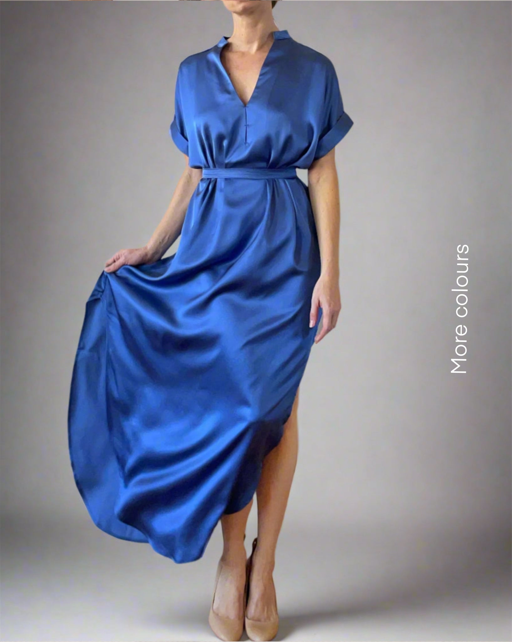 ANNE DRESS CORNFLOWER BLUE SATIN/MORE COLOURS