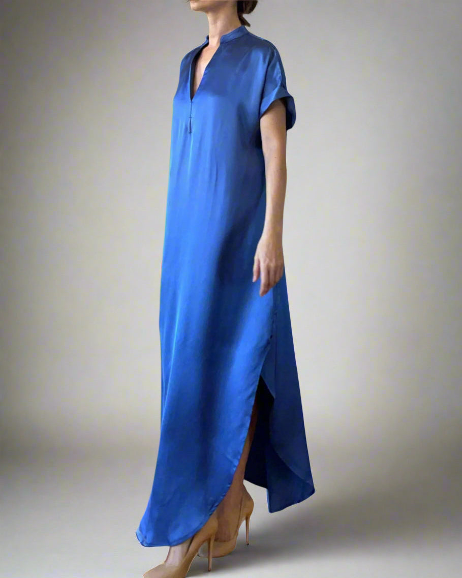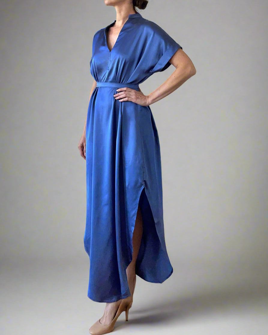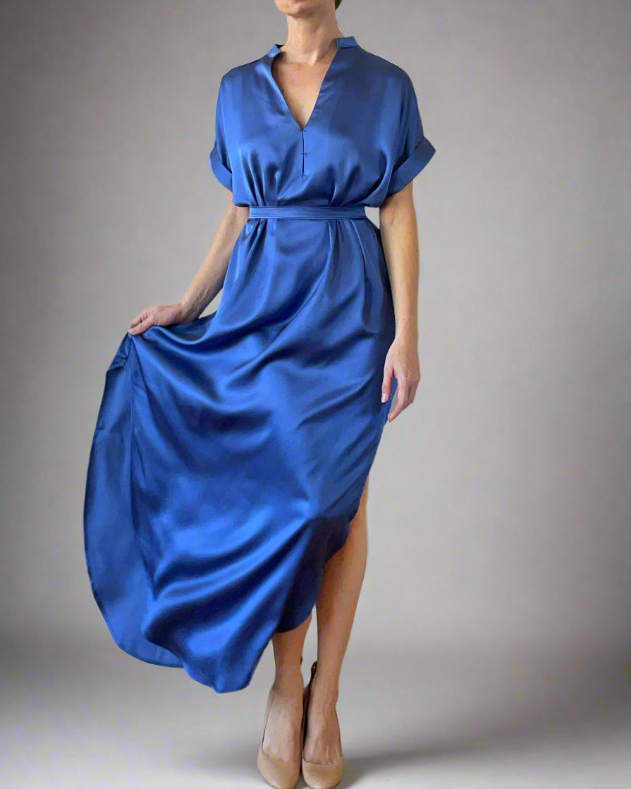 ANNE DRESS CORNFLOWER BLUE SATIN/MORE COLOURS
