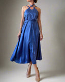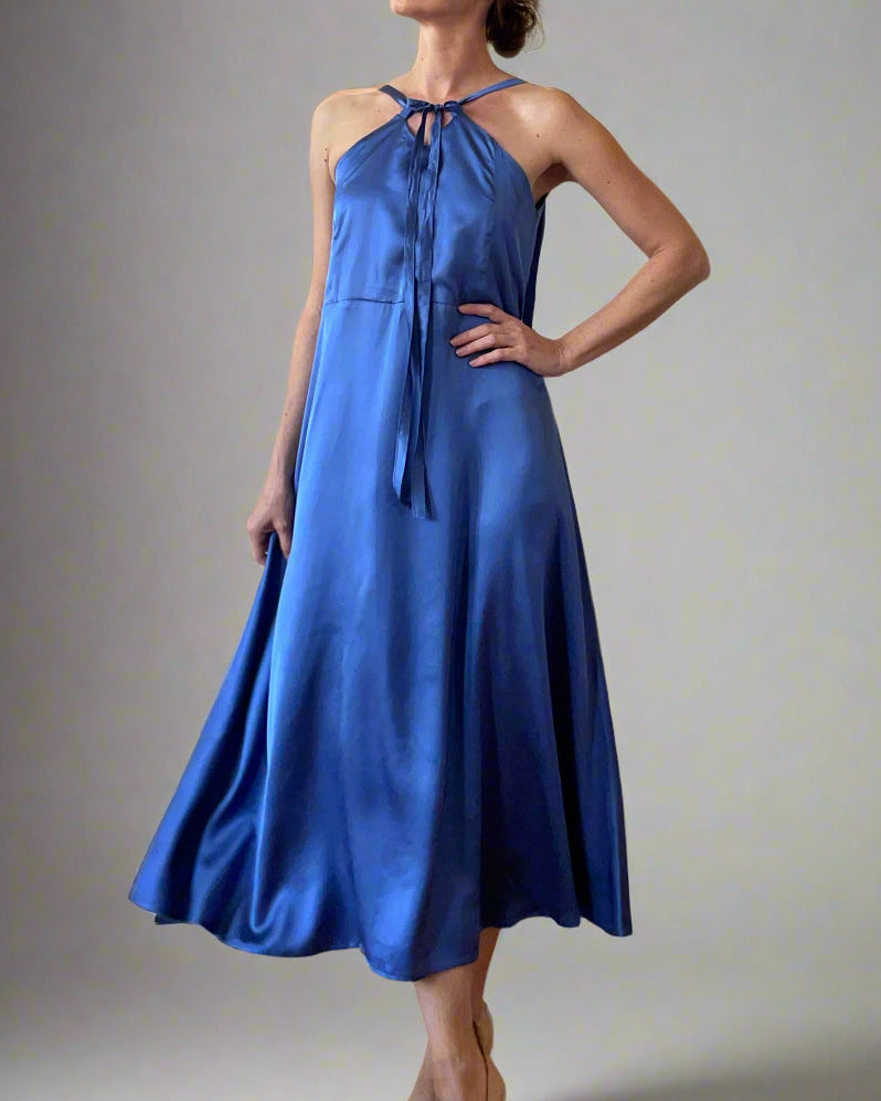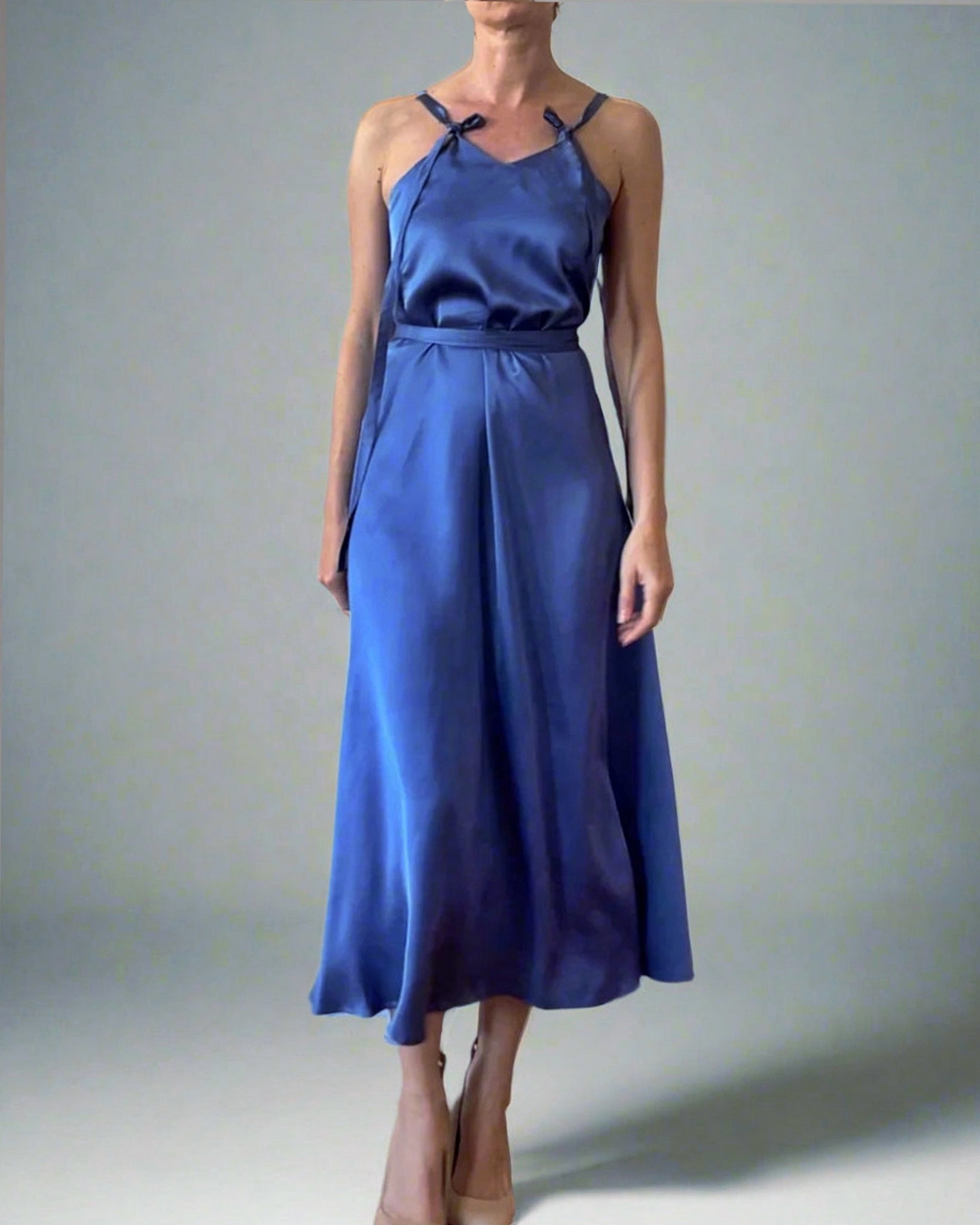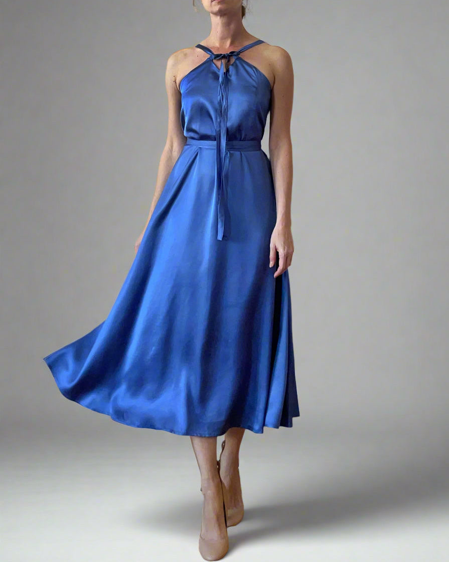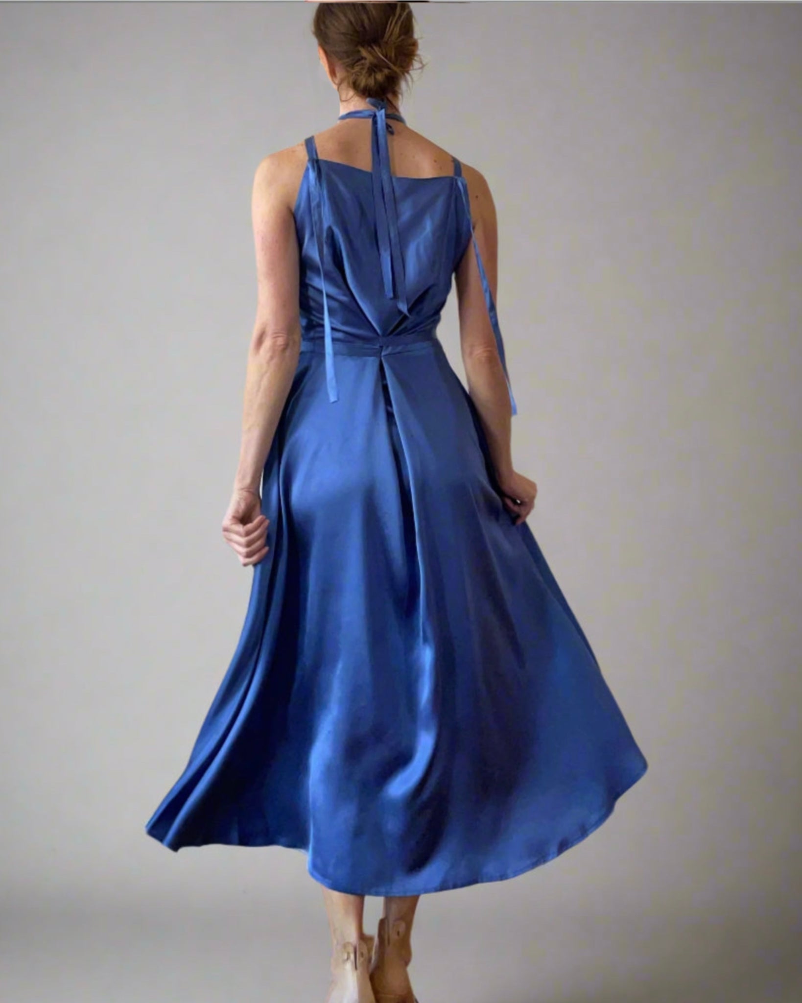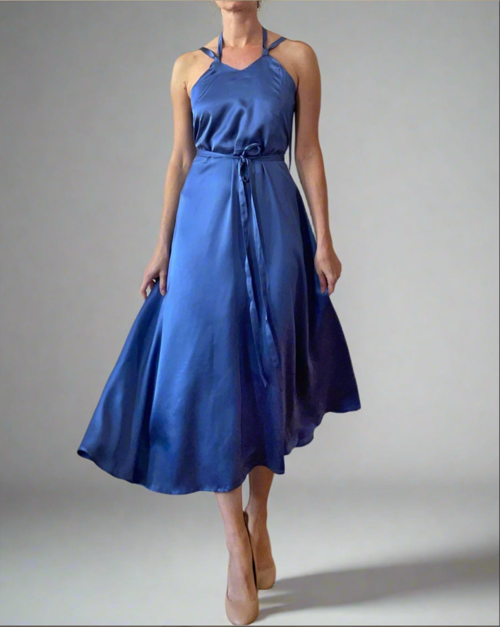 DAPHNE DRESS CORNFLOWER BLUE SATIN/MORE COLOURS