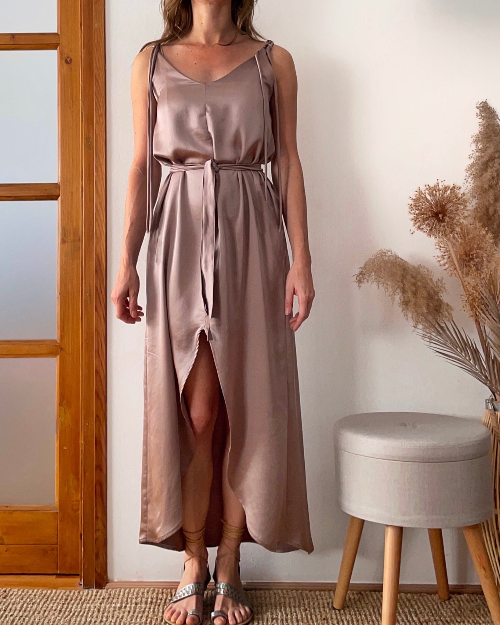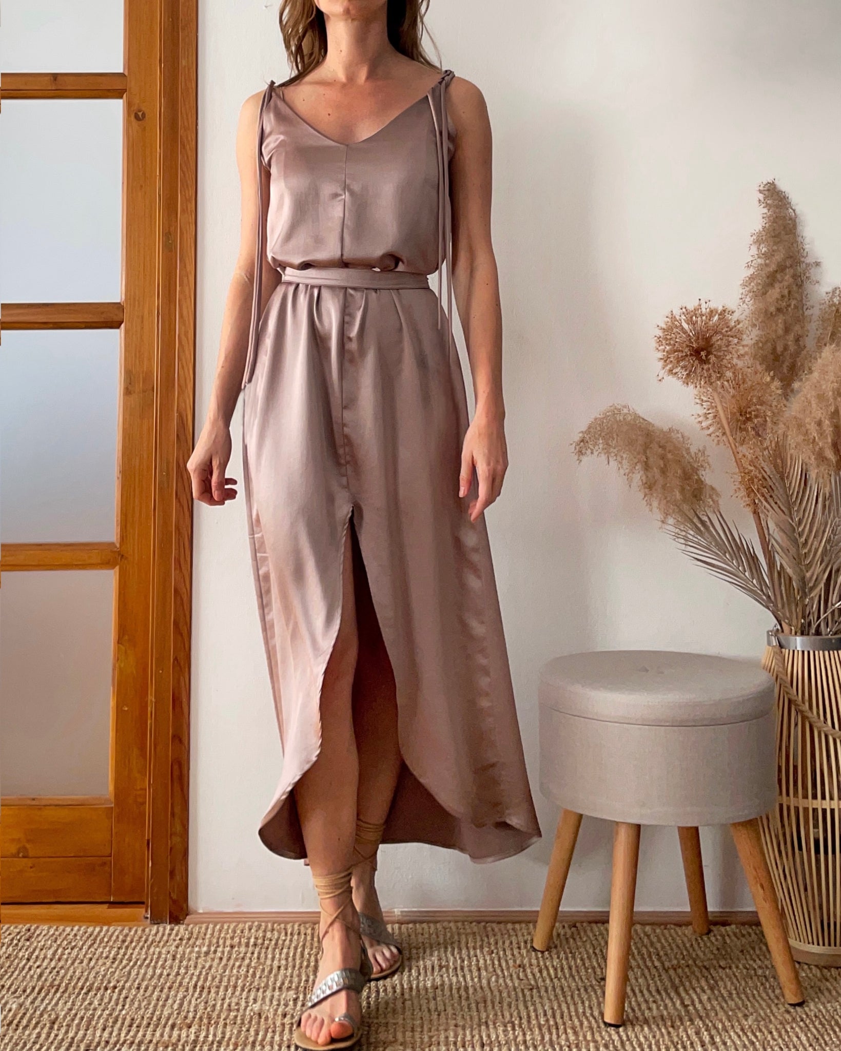 FLORA DRESS CHAI SATIN/MORE COLOURS
