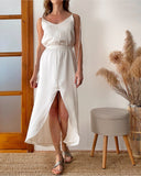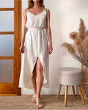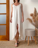 Floaty dress with front cut. Double layer of fabric, top is white twill satin with soft viscose lining underneath, to make sure the dress is not see-through.