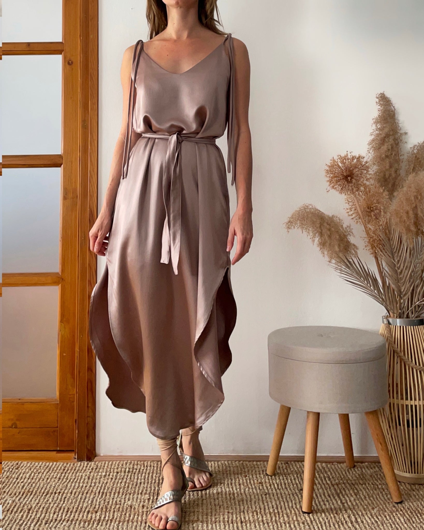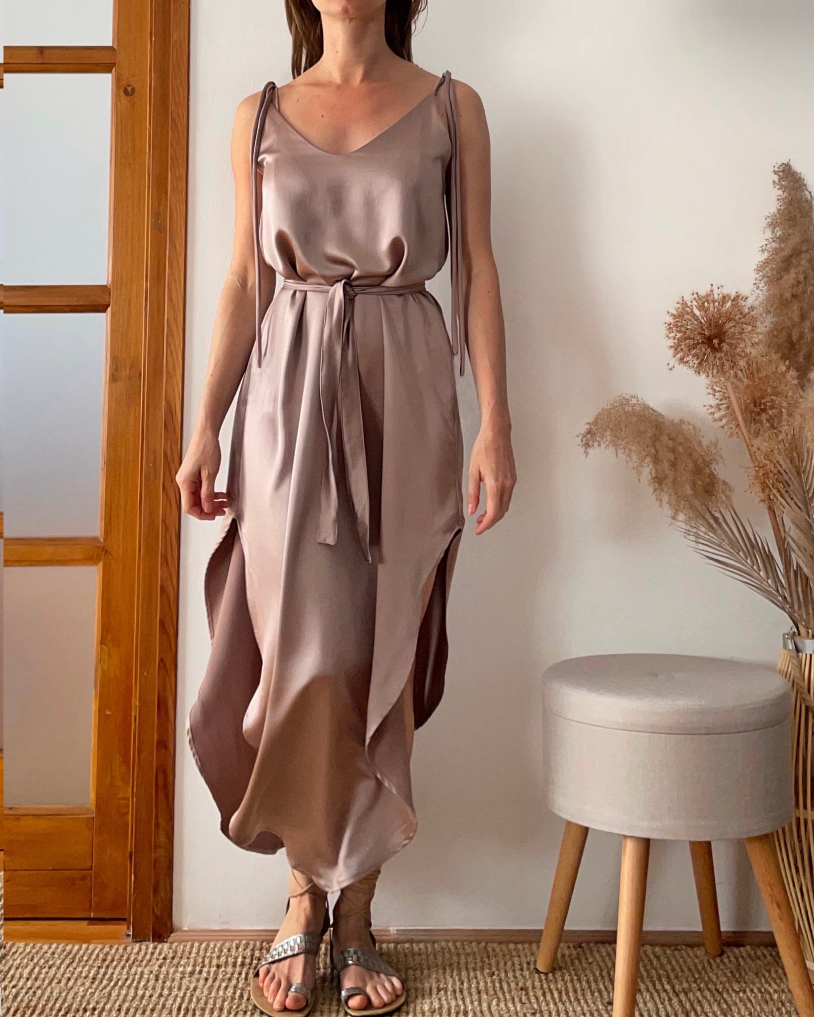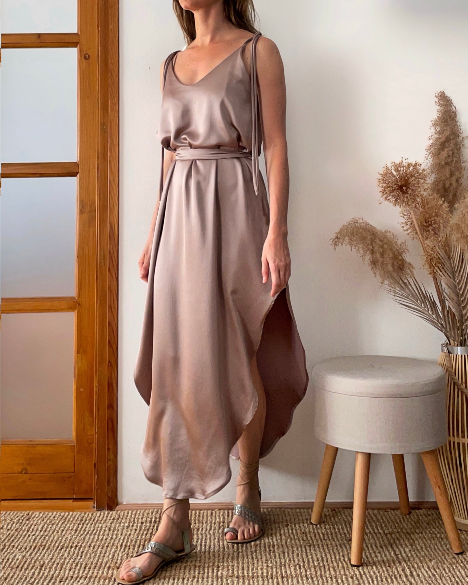 JUNE DRESS CHAI SATIN/MORE COLOURS
