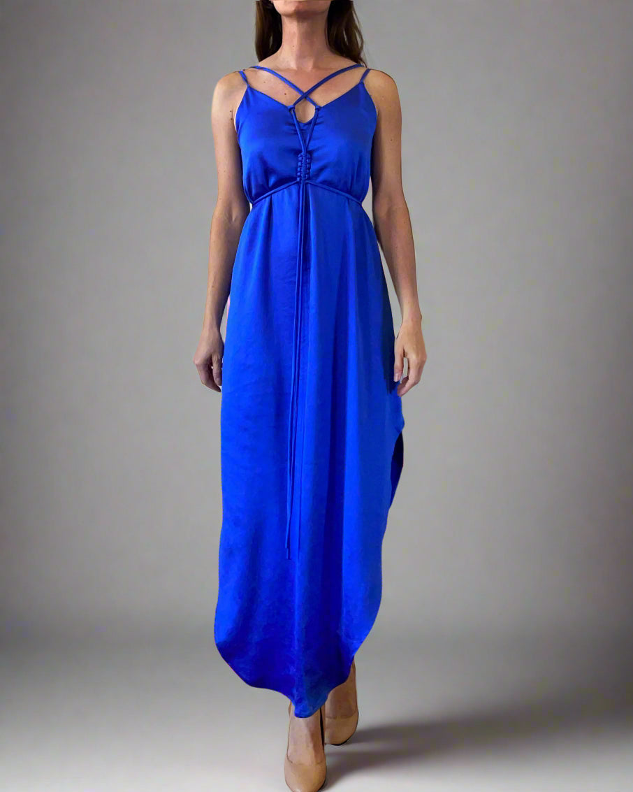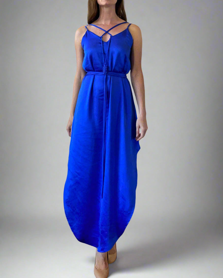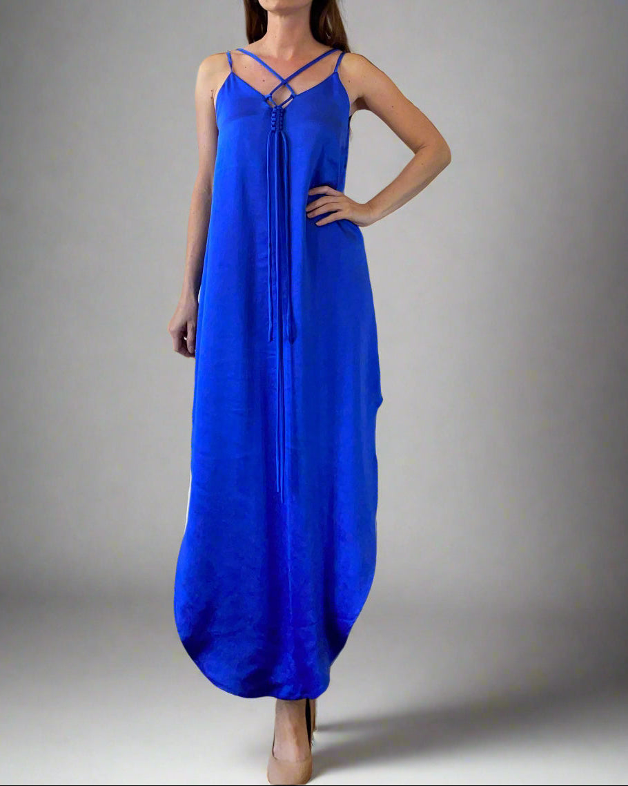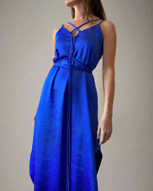 MACRAME JUNE DRESS QUEEN BLUE SATIN/MORE COLOURS