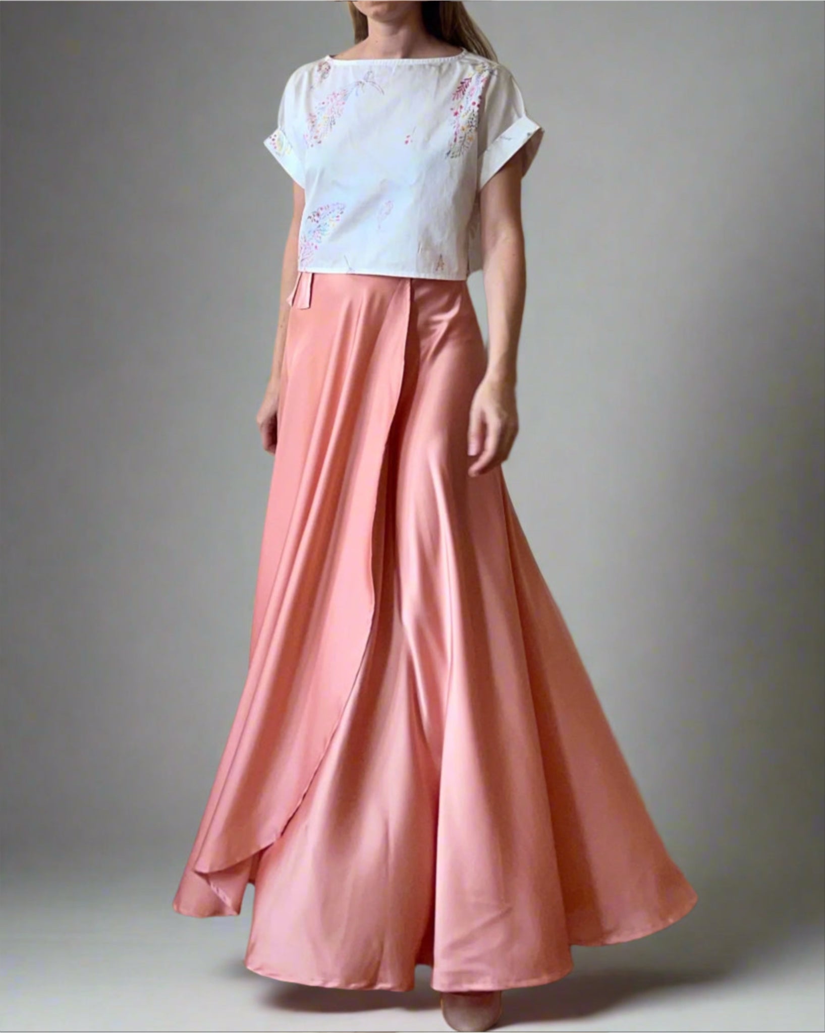 Átlapolható íves szabású maxi wrapszoknya. Két méretben rendelhető: