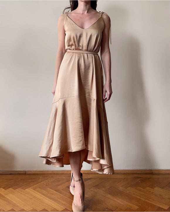 MIDI FRIDA DRESS CHAMPAGNE GOLD SATIN/MORE COLOURS