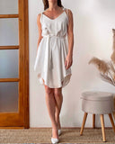 Cute rounded buttom short dress. Little sister of the beloved long June dress style. Double layer of fabric, top layer is shiny twill satin, underneath viscose lining to make sure the dress is not see-through.