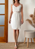 Adjustable shoulder straps. The dress comes with a waistband of its own fabric. You can wear it with or without.