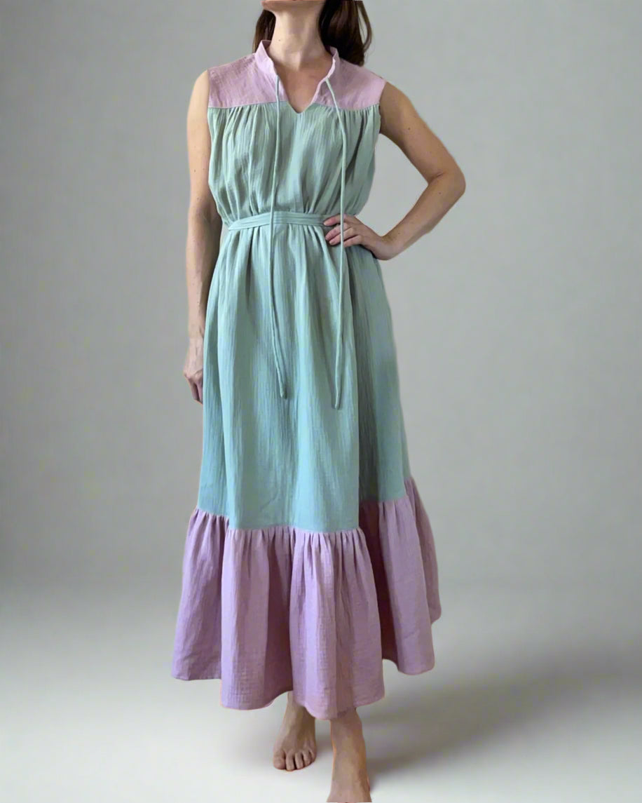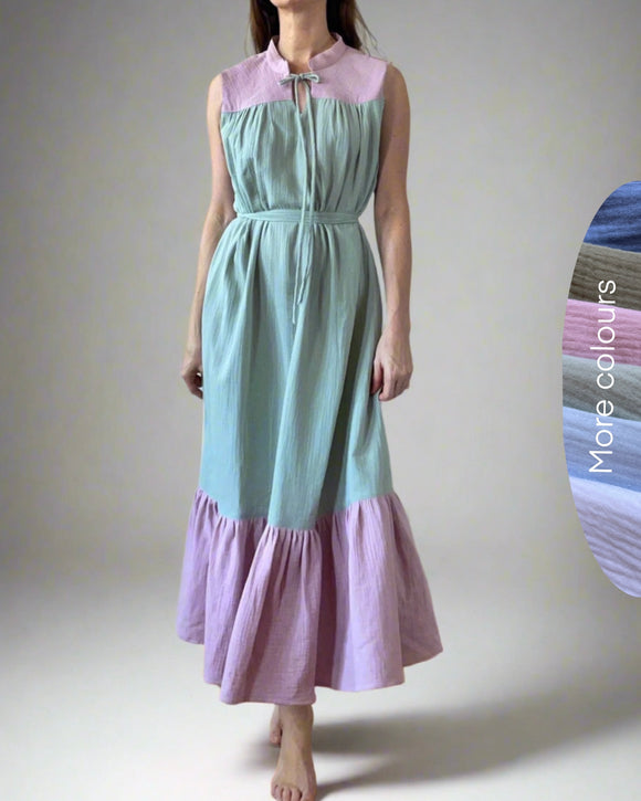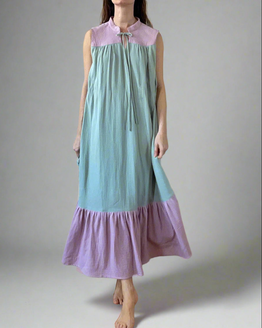 SLEEVELESS RUBY DRESS DOUBLE GAUZE/ COLOURBLOCK1.