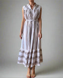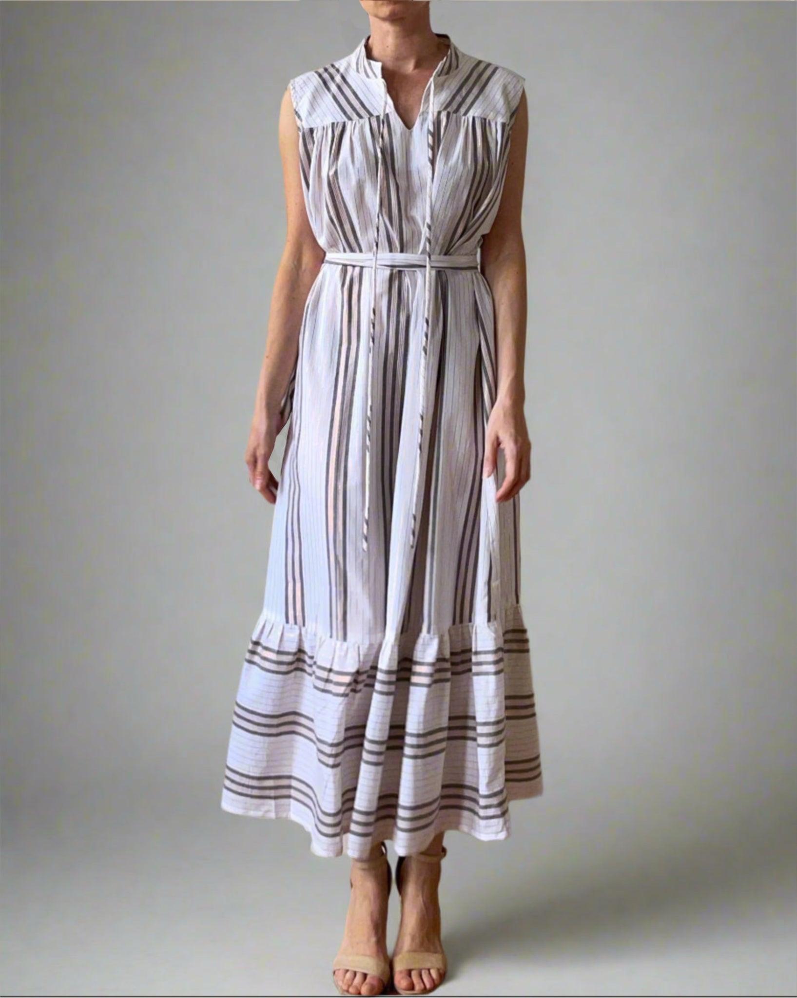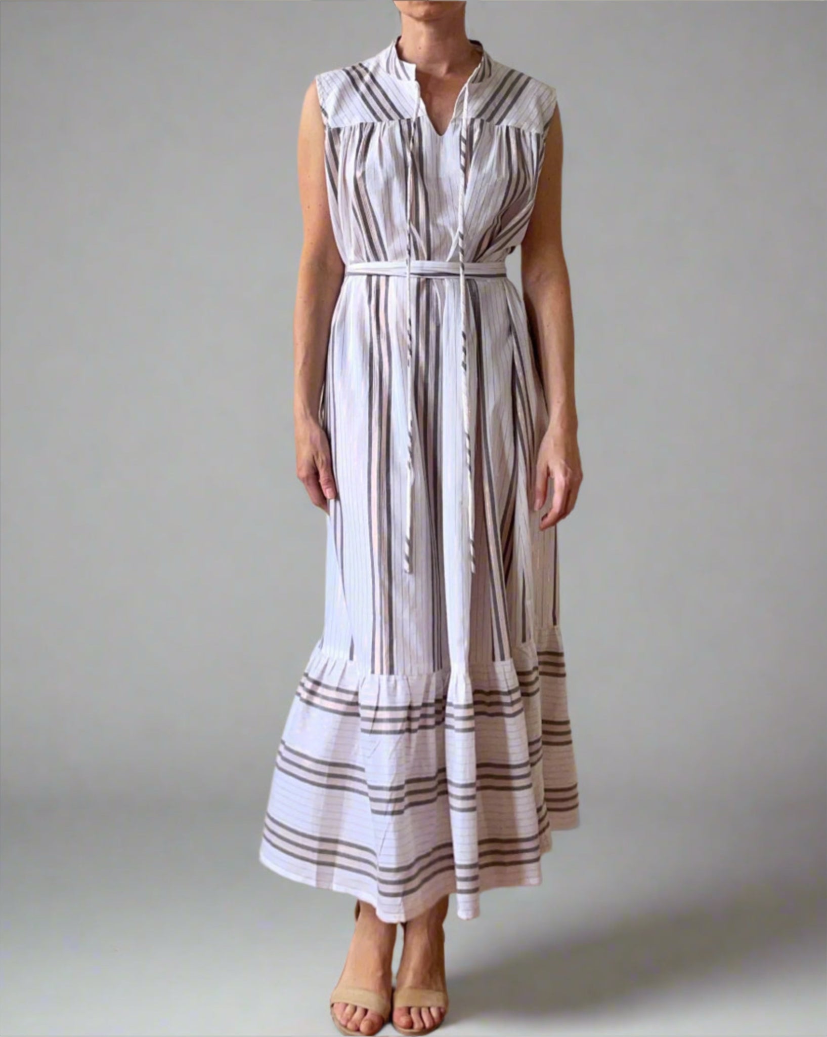 SLEEVELESS RUBY DRESS GREY STRIPES