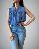 Mellben ráncolt melltől bővülő ujjatlan top.