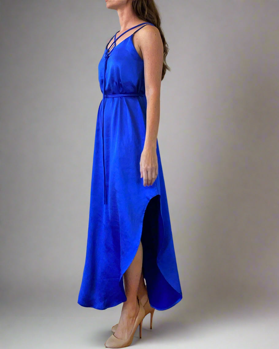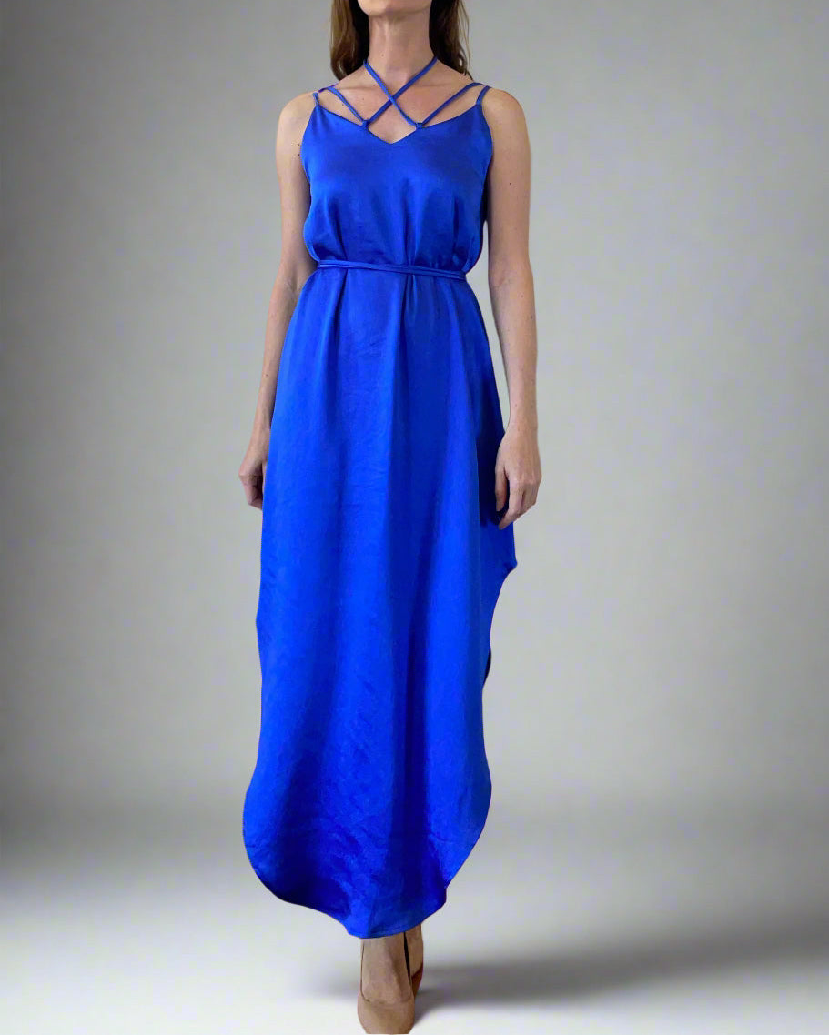 STRAP JUNE DRESS QUEEN BLUE SATIN/MORE COLOURS